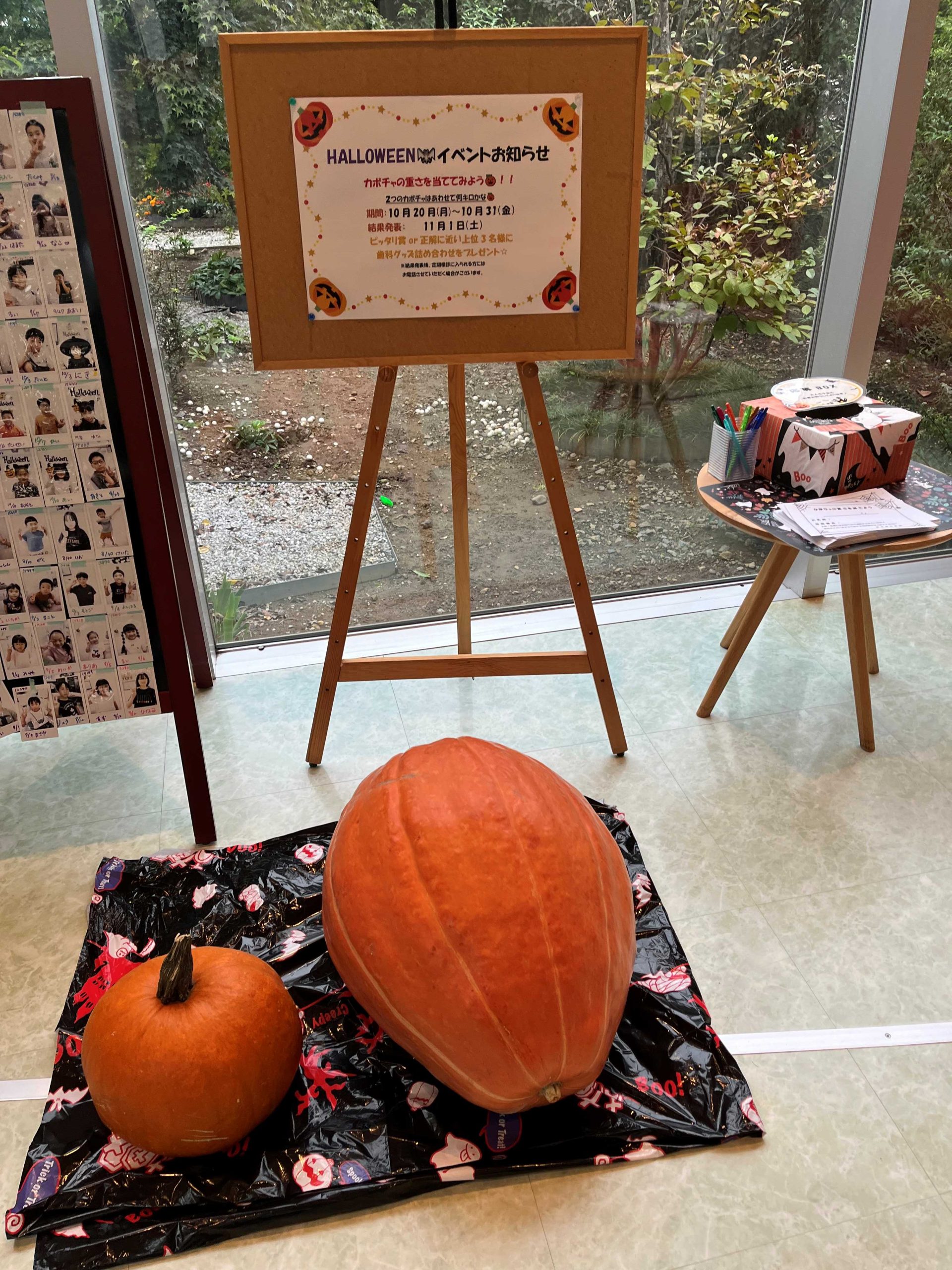 カボチャの重さ当てだったのですが、実際の重さに近かった3名に景品をプレゼントします(^^♪