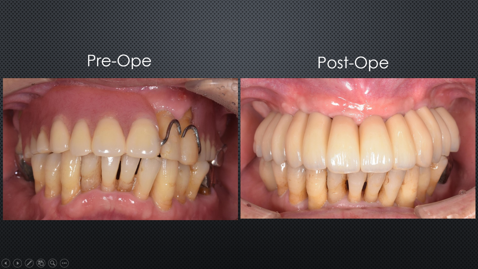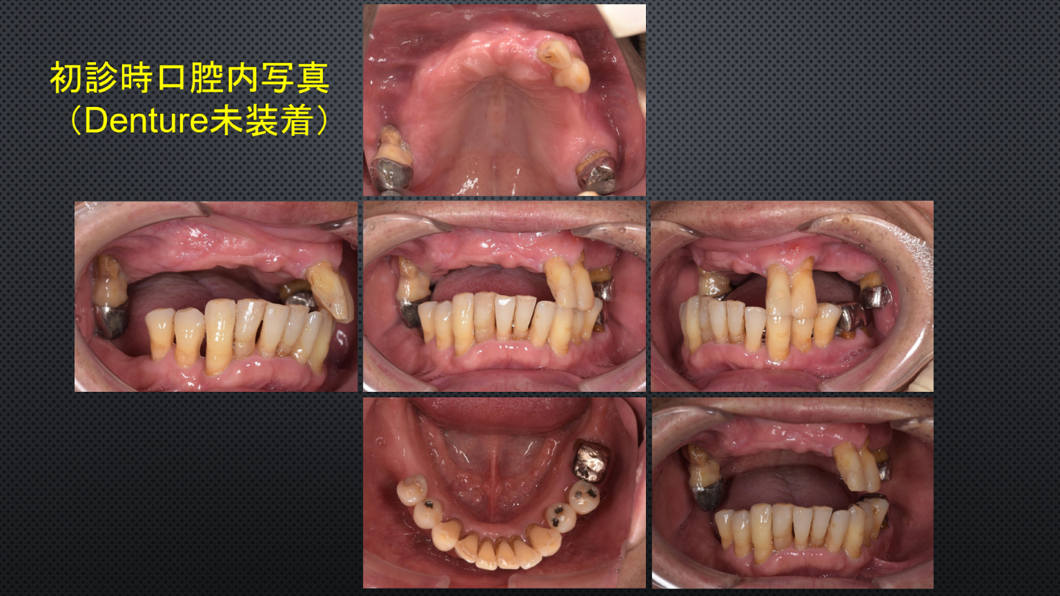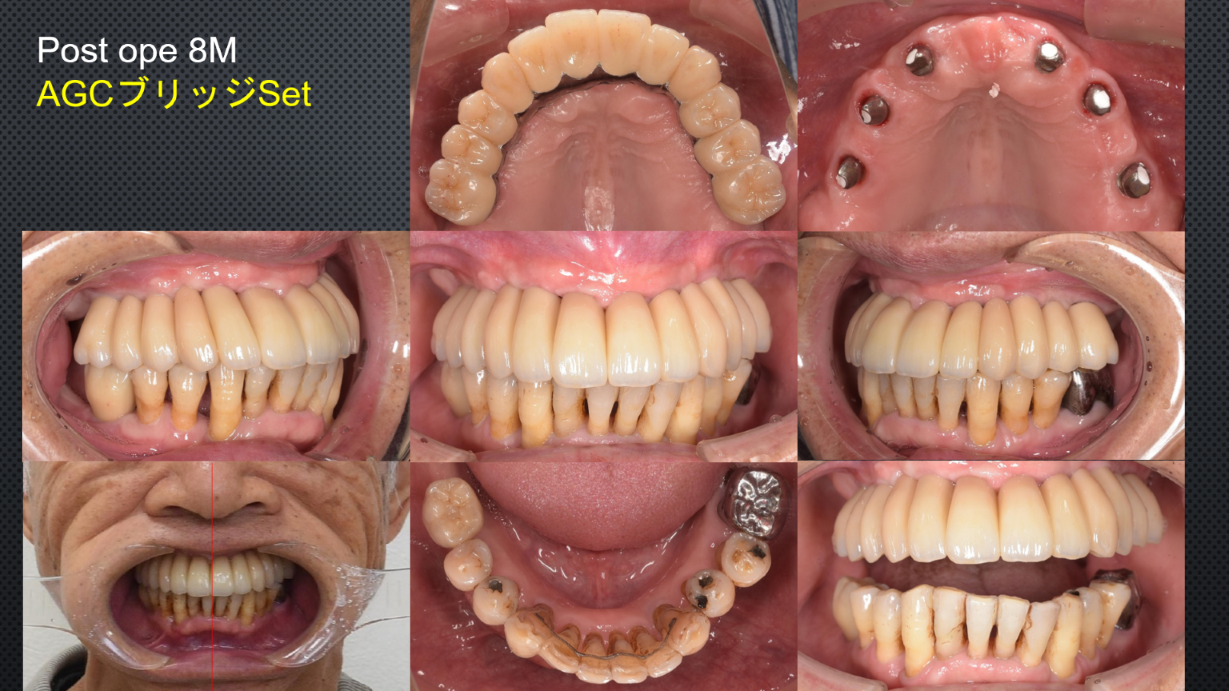 上の歯がほとんどない状態で、入れ歯がどうしても合わず、インプラント治療をご希望された患者様です↓